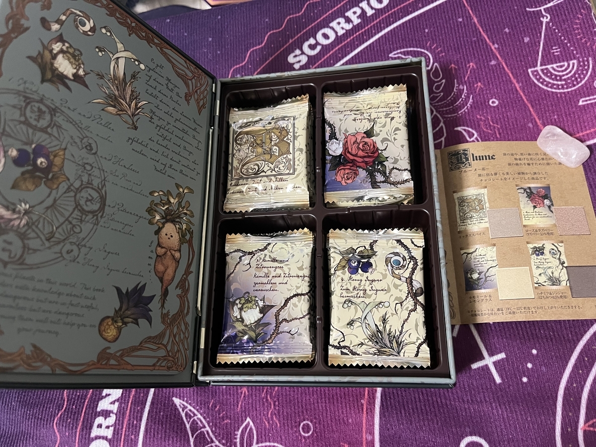 ブルーメのチョコレートはハーブ系のフレーバーで統一してあって、薬草モチーフにピッタリでした。